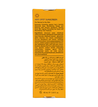 این ضد آفتاب در یک محفظه تیوپی پلاستیکی به حجم 40 میلی‌لیتر عرضه شده و مشخصات فنی آن به شرح زیر است: